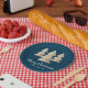 Celebrate Christmas with this beautiful "Merry Christmas" design featuring three faux gold Christmas trees and elegant blue background.