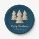 Elegant modern gold & blue Merry Christmas tree Paper Plate