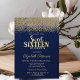 A modern, chic and glamourous Sweet 16 with gold diamonds on navy blue background.