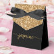Girly Elegant Modern Simple Gold Glitter Monogram Name Signature Script Custom Personalised Favour Box. This design featuring your first name in a pretty hand lettered style swash tail font signature typography (or calligraphy) above faux gold colour glitter block on black background. These stylish girly feminine gift boxes great for handing out, gifts, guest gifts and treats during an upcoming birthday party, BBQ, sweet 16 birthday, baby shower, wedding reception, bachelorette party, bridal shower, anniversary and more.