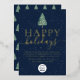 Corporate Logo Happy Holidays Christmas Business Holiday Card Elegant Blue and Gold Foil Watercolor Woodland Pine with festive lights Design