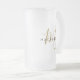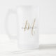 Elegant Modern Gold Script Monogram Frosted Glass Beer Mug