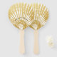 Create your own chic and elegant personalised hand fans with a seashell design that will keep guests cool at your outdoor beach wedding, birthday party, graduation, or any special coastal or seashell theme event. The paper fans with wood handles can be personalised easily with the design editor where you can add a monogram, name, initials, or add your own custom text to create ceremony programs and favours.