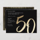 Modern minimalist 50th birthday party invitation features stylish faux gold foil number handwritten script 50 and your party details in classic serif font on black background colour, simple and elegant, great surprise adult milestone birthday invitation for men and women. The black background colour can be changed to any colour of your choice.