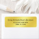 Modern, chic return address label with a shimmering, luscious golden background and a casual handwritten calligraphic script with clean flourishes for the personalized name + a simple, minimalist all caps font for the address.