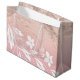 Gorgeous personalised paper shopping bag design with ombre faux copper rose gold glitter texture, beautiful white flowers, pastel pink background and elegant calligraphy font. Personalise the product with your name or any other text.