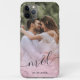 Gorgeous personalised iPhone case design with pink rose gold glitter marble texture and elegant calligraphy font. Personalise the product with your favourite photo, your initials and date or any other text. Perfect gift for your girlfriend or wife for Valentine's Day, anniversary or birthday.