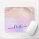 Gorgeous personalised mouse pad design with faux copper rose gold glitter marble, pastel purple texture and elegant calligraphy font. Personalise the product with your name or any other text.