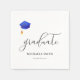 Simple but elegant graduation party napkins with an illustration of a royal blue graduation cap. Illustrated and designed by Patricia Alvarez.