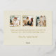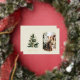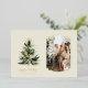 This elegant holiday design features a one-photo template in a unique cut-out shape with gold foil border, customisable greeting and modern watercolor style pine Christmas tree with gleaming gold foil baubles on a buff background.