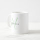 Elegant Modern Green Script Monogram Coffee Mug. An elegant green script monogram combined with a clean black san-serif font makes for a contemporary look.
