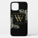Elegant Modern Greenery Black Gold Monogram Case-Mate iPhone Case