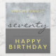 Elegant and Modern Grey Script Seventy 70th Birthday Wine label for a man who is celebrating his seventieth birthday. The design has dark and bright grey background texture and trendy typography and script in dark grey, white and yellow colours. Personalise the label with your name. Change the text Happy birthday if you want and make your own celebration wine labels.