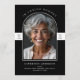 This elegant memorial program design features a clean and timeless black and white colour palette, creating a sophisticated and respectful tone ideal for a celebration of life or funeral service. The front showcases a modern, minimalist layout with refined serif typography and structured accents framing the arch-shaped custom photo and key details, emphasising clarity and grace. The back continues the elegant simplicity with a structured order of service section, presented in classic black text against a crisp white background for easy readability. Perfect for memorials, funeral services, and celebration of life ceremonies, this design offers a professional, polished, and heartfelt tribute that honours loved ones with dignity and style while providing a seamless, customisable experience for families.