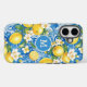 Elegant Modern Lemon Citrus Monogram Personalised Name iPhone 16 Cases features your custom monogram in an elegant script typography on a modern blue and yellow pattern of lemons and blossoms. Perfect gift for her for birthday, mum for Mother's Day, sister or bestie for Christmas and holidays. Designed by ©2024 Evco Studio www.zazzle.com/store/evcostudio