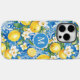Elegant Modern Lemon Citrus Monogram Personalised Name iPhone 16 Pro Max Cases features your monogram in an elegant script typography on a modern blue and yellow pattern of lemons and blossoms. Perfect gift for her for birthday, mum for Mother's Day, sister or bestie for Christmas and holidays. Designed by ©2024 Evco Studio www.zazzle.com/store/evcostudio