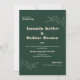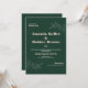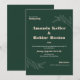 Celebrate your special day with this elegant modern wedding invitation featuring minimalist leaf line art over a deep green background. Perfect for contemporary garden weddings or sophisticated celebrations with a botanical theme.