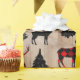 Elegant modern happy holidays wrapping paper with moose , christmas trees , black and red lumberjack / plaid pattern , reindeer and falling snow.