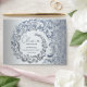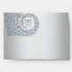 This envelope design radiates sophistication, featuring an ornate silver damask floral frame that gracefully encircles the centre. The swirling leaves, floral curves, and heart-like motifs create a refined ornamental border. The background softly blends into shades of light silver with a metallic sheen, adding depth and elegance. At the centre, the recipient’s name and address are highlighted in matching silver, standing out with clarity and charm. The shimmering silver palette gives this design a timeless and luxurious appeal, making it ideal for weddings, anniversaries, gala dinners, and upscale formal celebrations.