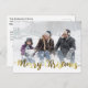 Send warm wishes to your friends and loved ones with this beautiful modern photo postcard. Design features of one photo and Merry Christmas in gold modern trendy handwritten script. Add your address and wishes to the back. Click customise further to edit this template.Please note no real gold foil will be used.