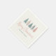 Christmas napkins with pastel trees and modern script typography in a minimalist holiday design.