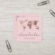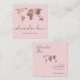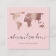 Stylish business card design which features elegant faux copper rose gold world map, pink background and elegant calligraphy font. Personalise the product with your name and details.