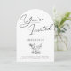 Celebrate in style with this chic and modern arch-shaped invitation featuring an elegant script that announces "You're Invited" alongside a clean serif font for the party details. Illustrated cocktails add a playful touch, making this perfect for milestone birthdays or sophisticated gatherings. The monochromatic black-and-white design radiates timeless charm, while the arched format adds a trendy, unique element. Customise the details for a personalised invitation that’s perfect for a 21st birthday celebration or any special occasion.
