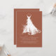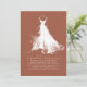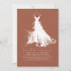Indulge in a bridal shower invitation that is a true manifestation of feminine grace and refinement, highlighted by a beautifully rendered white wedding gown. The design is imbued with a romantic and intimate allure, beckoning the viewer to immerse themselves in its depth. It artfully portrays the spirit of a bride brimming with love, her aspirations and dreams delicately woven into the fabric of the dress's silhouette. The invitation's typography merges subtlety with elegance, complementing the hand-drawn, pencil-sketched illustration that contributes layers of whimsical charm, tender beauty, and a uniquely personal essence. Set against a terracotta backdrop, this invitation becomes a versatile treasure, seamlessly adaptable to any bridal shower theme, whether you envision boho chic, urban contemporary, rustic charm, timeless elegance, or an autumnal vintage romance. Exuding feminine sophistication and allure, this burnt orange invitation is designed to create a lasting and unforgettable impact on every recipient.