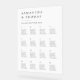 Acrylic wedding seating chart sign featuring modern minimalist typography in black and white colour.