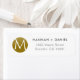 This elegant, modern return address label template has a clean, minimalist flair with the first initial of your last name on a chic golden tone base. It's perfect for everyday use and also works well with wedding thank you card envelopes and other special occasions. You can use two first names or any other format that suits your needs. You can also change the backround colour and the style, colour and size of the text. Create your own custom look with the intuitive design tools, and please check our store for a large selection of return address labels, including this design on a chic black base!