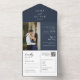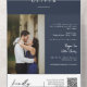 This all-in-one invitation features a clean and simple block serif typography font and calligraphy on a navy blue background. The simplicity of this design adds a touch of elegance to your wedding and works well with all wedding themes and definitely a great addition to your wedding. Just customise the names and wording in a few easy steps and personalise the all-in-one invitation card with your photo of the happy couple and type in the QR Code to give your invitation a nice personal touch. This invitation will save you money to send everything at once. It has a perforated RSVP postcard can be easy to tear off and your guest just sends it to you. Just simply fold each card into the outlined shape -- seal and send to your guests. No envelope is needed for shipping -- just postage.