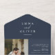 Elegant Modern Navy Blue Boho QR Code Photo RSVP All In One Invitation