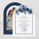 Elegant Modern Navy Blue Floral Arch Photo Wedding Invitation