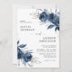 Elegant Modern Navy Blue Floral Wedding Invitation