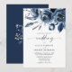 Elegant Modern Navy Blue Flowers & Script Wedding Invitation