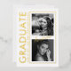 Showcase your graduate in a clean, modern way with this vertical photo graduation announcement. Designed with a magazine-style layout, soft white background, and refined gold foil accents, this announcement highlights two portrait photos alongside bold typography for a contemporary, editorial look. Fully customizable with the graduate’s name, school, class year, and future plans, this design is perfect for high school or college graduates. A polished keepsake for friends and family, it celebrates achievement with style, confidence, and sophistication. Please note that a black and white photo filter has been applied to the photo masks. This can be removed in "Design" mode if you desire color photos.