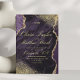 Modern stylish dark wedding card Purple with gold dust on with a gold ink pour effect (the gold is a digital effect, not real foil!) and modern calligraphy. Classy and elegant, simple and modern invitation. Gold ink pour effect (the gold is a digital effect, not real foil!) and modern calligraphy.