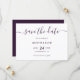Complement your purple wedding party with these elegant wedding save the date cards featuring a modern script font. Matching items available.