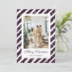 Modern purple and white photo Christmas card featuring a purple and white photo frame with stars and an elegant script font. Easily personalise this festive photo Christmas card with your photo and family name.