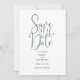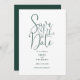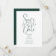 This emerald green elegant script wedding save-the-date invitation can be personalised with all your special wedding day information and wedding website QR code. Designed by Thisisnotme©