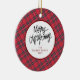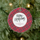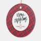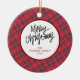Elegant Modern Red Plaid Christmas Family Photo Ceramic Tree Decoration