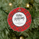 Elegant Modern Red Plaid Christmas Family Photo Ceramic Tree Decoration