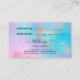 Beautiful and stylish makeup artist referral card design which features modern handwritten script lettering, faux rose gold and colorful watercolor texture.