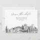 Modern Salt Lake City black and white save the date invitation. The front showcases a stunning sketch, setting the perfect tone for your wedding day. Add your own photo to the back and customise the text to make it your own. Enter the Zazzle design tool for additional design customisations.
