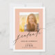 This elegant graduation party invitation offers two photo frames, one on the front and a second on the back. This light orange design is accented with stylish handwriting style text and a thick white border. Personalise the backside with your party invitation details.
