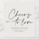 Add a touch of elegance to your celebration with this modern black and white wine bottle label featuring the handwritten script phrase “Cheers to Love.” Perfect for weddings, anniversaries, engagement parties, bridal showers, or any romantic occasion. Personalise with your names, date, or special message to create a stylish keepsake your guests will love. A simple yet sophisticated design that pairs beautifully with any event theme.
