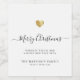 Modern minimalist family holiday gift wine label with elegant script calligraphy reading MERRY CHRISTMAS under a printed golden heart. Below is space for your custom message as well as additional space on the back for more detailed greetings.