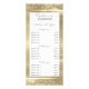 Elegant faux gold foil and confetti background service menu rack card. Lovely script font typography. Five editable categories with service description and custom price list. Contact, media branding links, and address information options on the back of card. All text is editable. This design would work well with hair salons, nail salons, spas, and many other businesses.