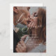 Modern bridal shower script minimalist design in charcoal black and white on couple's photo, simple and elegant.