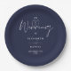 Elegant Modern Script Navy Blue Wedding Paper Plate